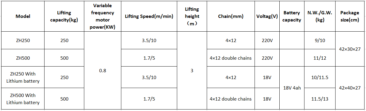ZH MINI Electric Chain Hoist