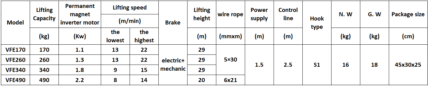 VFE ECONOMICAL LIGHT WEIGHT SUSPENSION TYPE WIRE WINCH